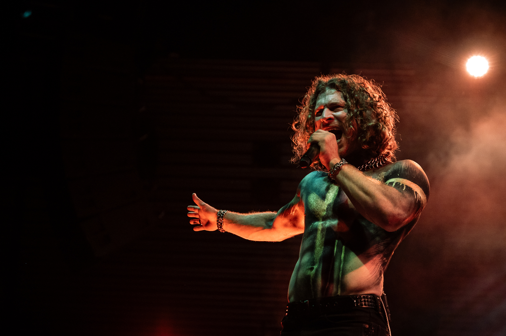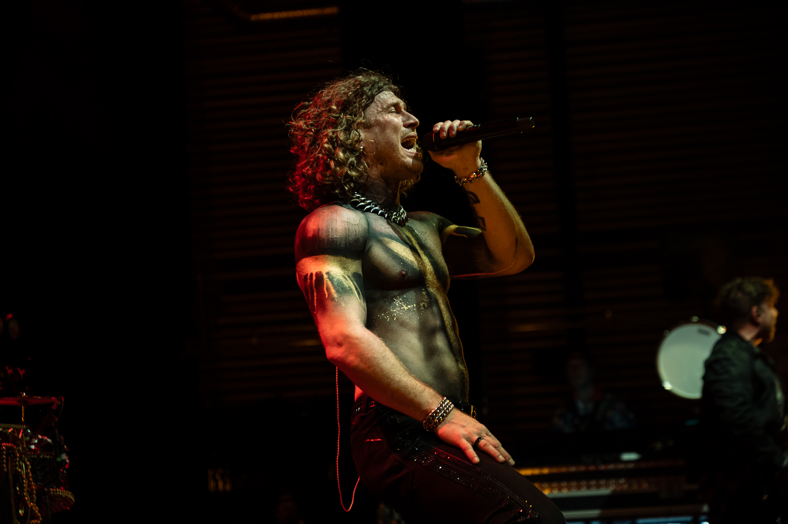 Hawkins er en frontmand, der formår at sætte en stemning i kog og han leverer aldrig en dårlig optræden. På bare fødder, i sort bodypaint i bar overkrop, hopper han rundt og synger med sin sædvanlige flotte røst. Der moshes ikke, men der råbes højt med når vi bliver bedt om det af Hawkins på blandt andet den frembrusende “Go To War” og den skrøbelige, men storladne “FREEFALL”. Der kommer et stunt hvor de ekstra trommer bagved kommer i brug og bassen skal spændes fast imens 3 af medlemmerne hamrer og slår på den. Det er en af de mere interessante semi-pauser jeg har set, men jeg savner lidt det metaltårn, som forsangeren plejede at klatre op i back in the days.