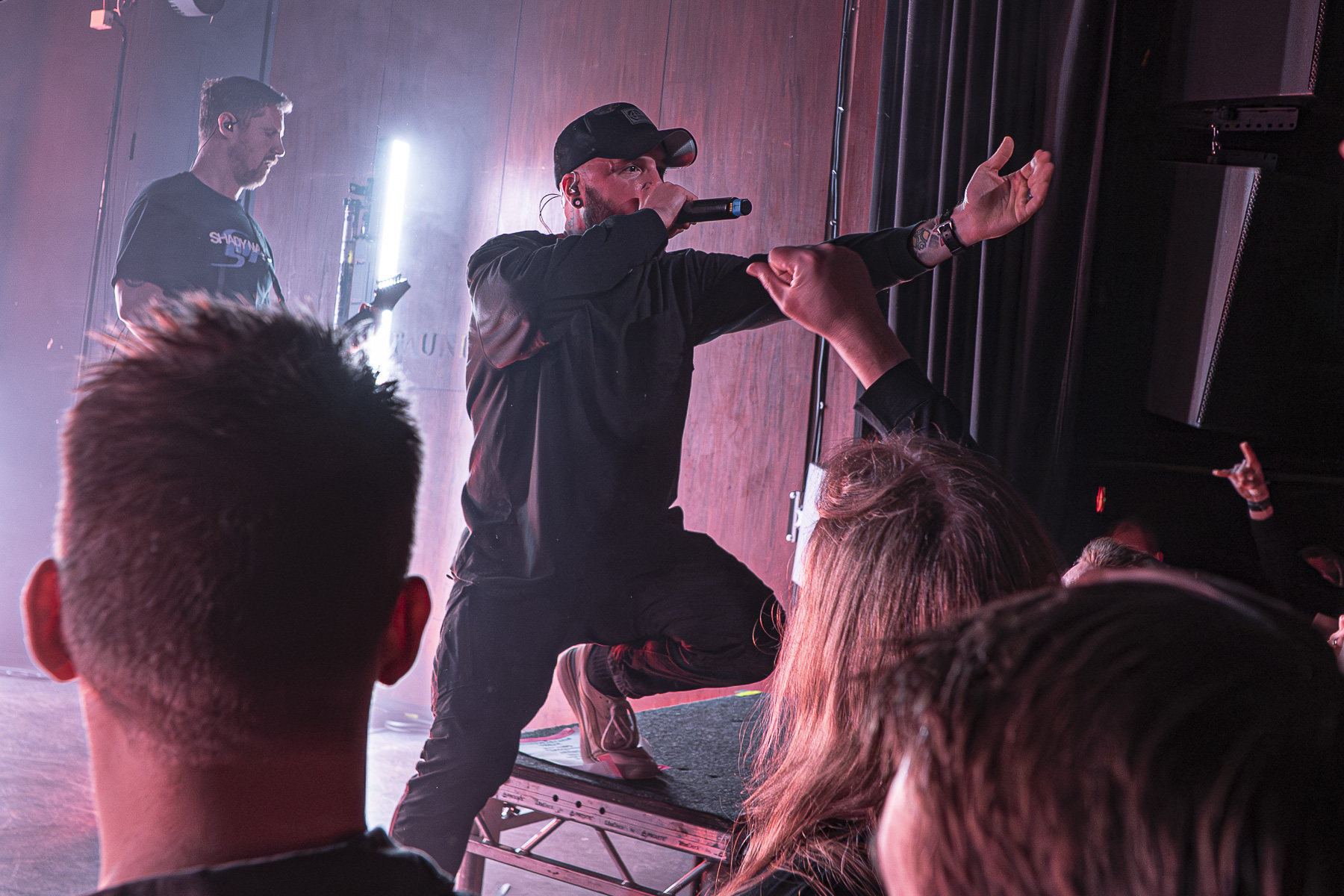 Der er proppet og det er tydeligt at mærke at stemningen er på bristepunktet. 5 lysstænger blinker rødt, grønt og blåt, men ellers er der ikke meget udstyr på scenen. Thy Art Is Murder kommer ind til et stort bifald og flækker vores nakker med “Blood Throne” og “Join Me In Armageddon” fra Godlike (2023). Netop dette album er ikke på Yousee Musik, så jeg har ikke lyttet meget til det. Det virker heldigvis til at lægge sig fint op af tidligere udgivelser. Publikum kaster sig ind i hinanden fra første breakdown. Miller ved at det her er specielt og han er god til at få gang i gulvet og pitten både snurrer og koger nærmest hele vejen igennem.